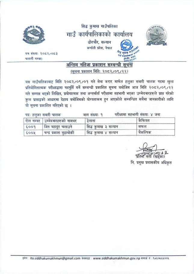 हलुका सवारी चालकको अन्तिम नतिजा प्रकाशन सम्बन्धि सूचना ।
