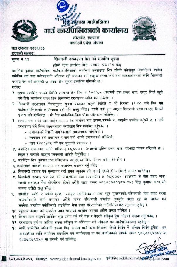 » शिलवन्दी दरभाउपत्र पेश गर्ने सम्बन्धि सूचना ।
